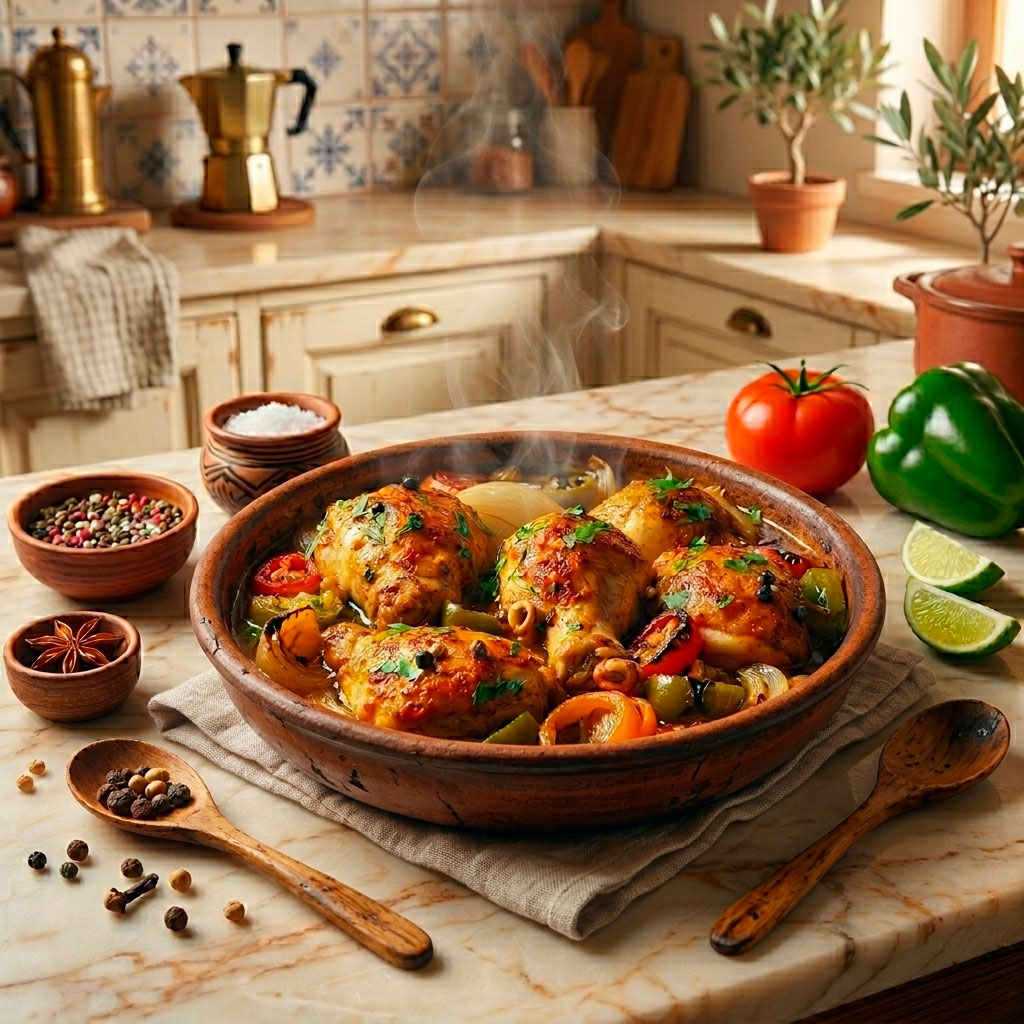 7. Cocina a fuego lento durante unos 20-25 minutos o hasta que el pollo esté bien cocido y tierno.
